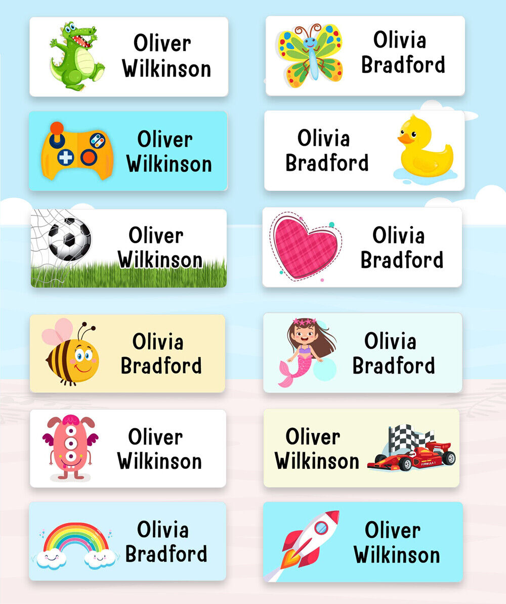 Choose from multiple sizes, shapes, and themes for your Kids Labels. Options include personalized names, icons, and color choices to reflect each child’s unique style. Available in waterproof materials for items like lunch boxes and water bottles, these labels are practical and enjoyable for kids.